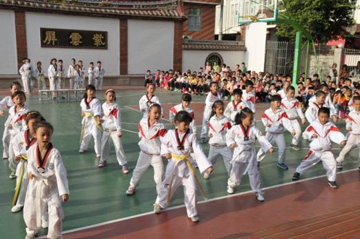 2012年11月14日,在廈門市文安小學(xué)新建的漂亮操場(chǎng)上舉辦了一場(chǎng)熱烈而隆重的頒獎(jiǎng)儀式,廈門國(guó)貿(mào)集團(tuán)副總裁、黨委副書記李云山參加了儀式并與文安小學(xué)郭校長(zhǎng)一起為在市、區(qū)跆拳道比賽中取得佳績(jī)的小小隊(duì)員們頒獎(jiǎng)。