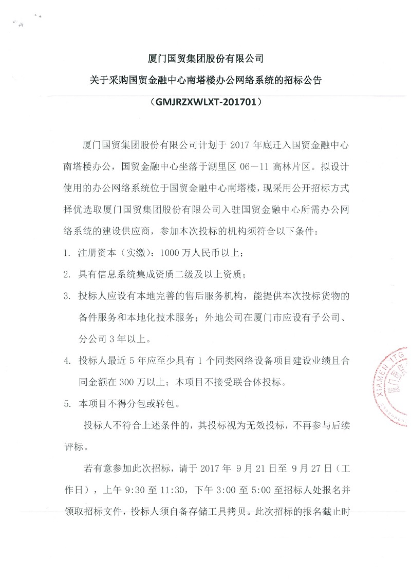 國(guó)貿(mào)金融中心網(wǎng)絡(luò)項(xiàng)目招標(biāo)公告