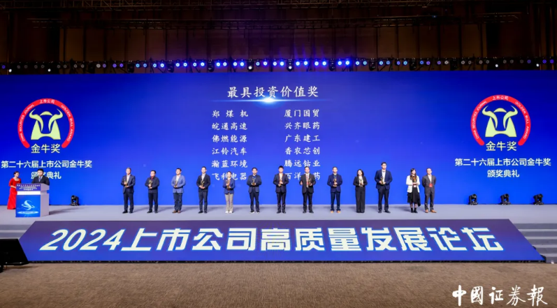 中國證券報第26屆上市公司金牛獎獲獎名單正式發(fā)布,廈門國貿(mào)集團股份有限公司榮膺“2023年度金牛最具投資價值獎”。