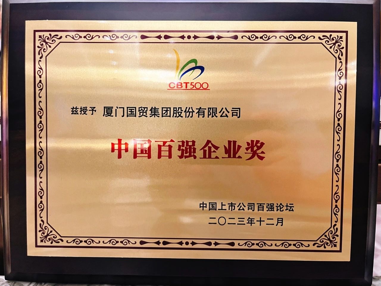 廈門國(guó)貿(mào)榮獲“2023年中國(guó)上市公司百?gòu)?qiáng)企業(yè)獎(jiǎng)”