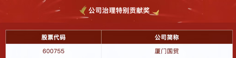 廈門國(guó)貿(mào)榮獲第二十屆 “金圓桌獎(jiǎng)”之“公司治理特別貢獻(xiàn)獎(jiǎng)”。