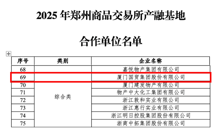 國貿(mào)股份入選鄭商所2025年服務(wù)實體經(jīng)濟(jì)產(chǎn)融基地。