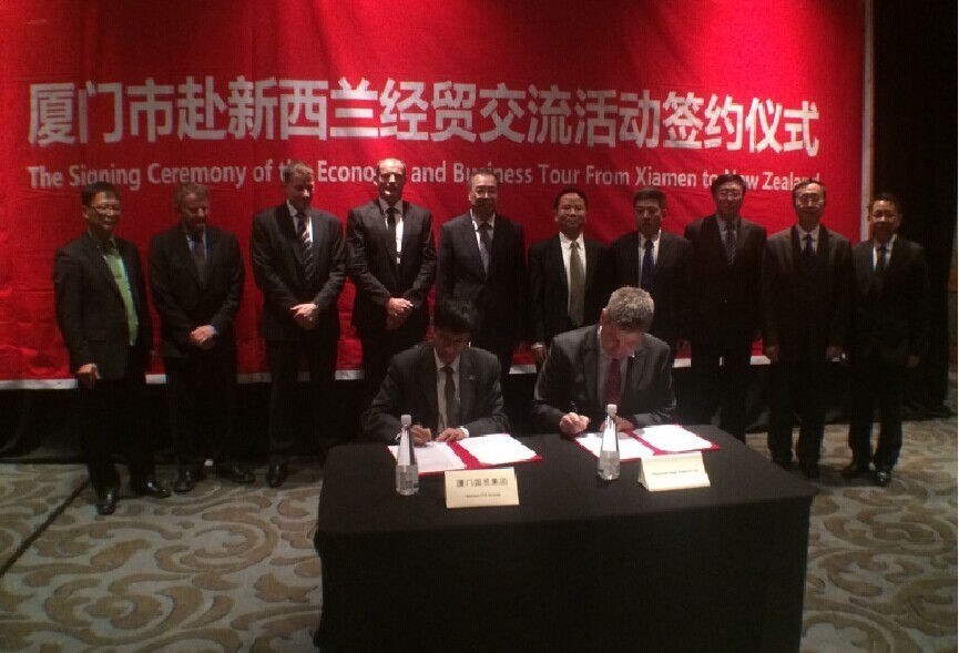 “廈門市赴新西蘭經(jīng)貿(mào)交流活動(dòng)”簽約儀式昨日在奧克蘭舉行。在市長劉可清的見證下,國貿(mào)集團(tuán)董事長何福龍與新西蘭合作伙伴現(xiàn)場進(jìn)行簽約。