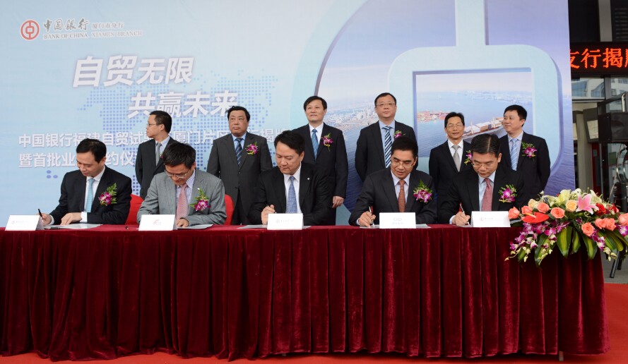 廈門自貿(mào)區(qū)掛牌首日 廈門國(guó)貿(mào)與廈門中行、港中銀簽訂海外直貸協(xié)議