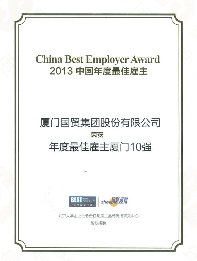中國年度最佳雇主活動近日落下帷幕,廈門國貿(mào)榮獲廈門