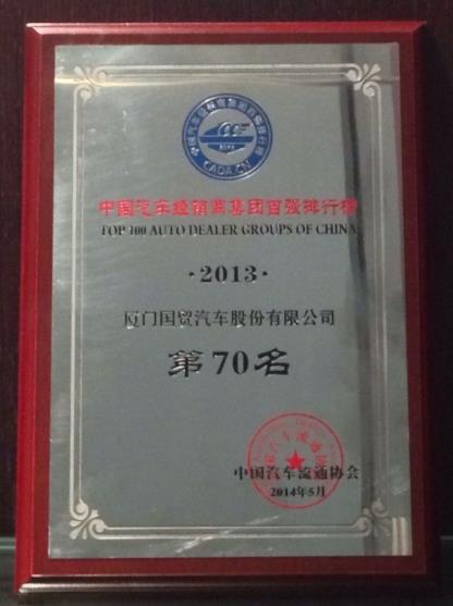 5月28日,中國汽車流通協(xié)會召開發(fā)布會,揭曉2013年度中國汽車流通行業(yè)經(jīng)銷商集團百強名單。繼去年首次榮登百強榜后,國貿(mào)汽車位居第70名,蟬聯(lián)榜單。