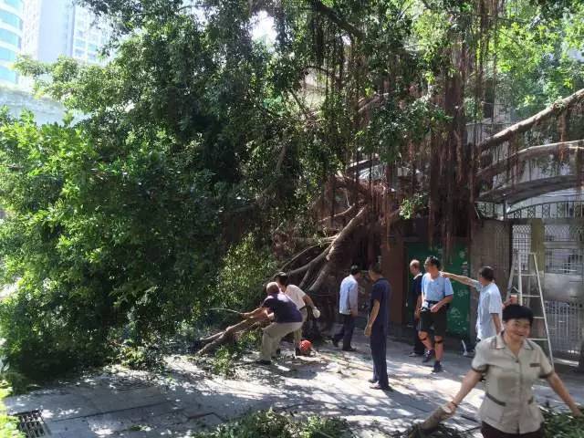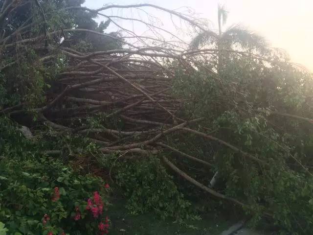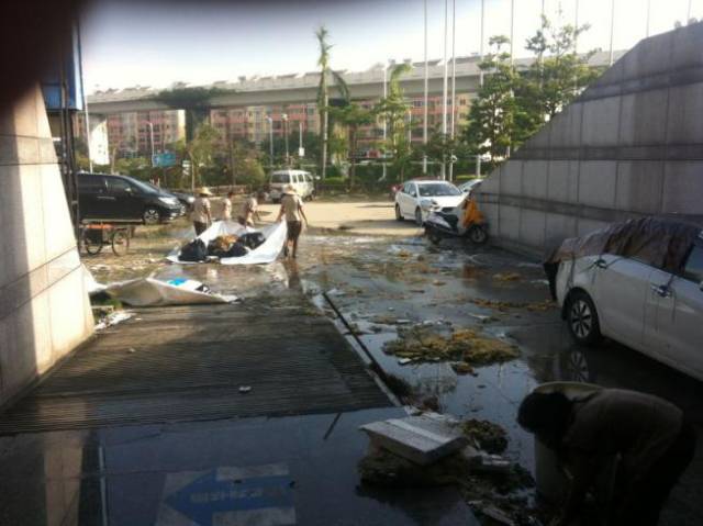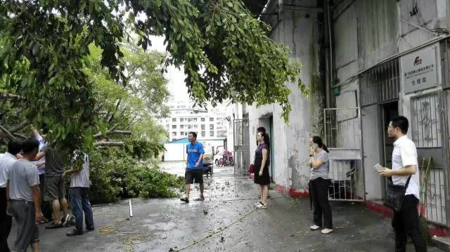 在物業(yè)公司員工的幫助下,幾個(gè)被風(fēng)吹破的玻璃很快被用木板臨時(shí)加固。在他們和地產(chǎn)廈門公司全力協(xié)助以及社區(qū)志愿者配合下,被倒坍大樹阻擋的進(jìn)出國貿(mào)大廈的 唯一通道于17日上午順利打通,所有樹枝分三部車也在當(dāng)天晚上8時(shí)許的瓢潑大雨中運(yùn)走,確保了18日上班車輛的正常通行。