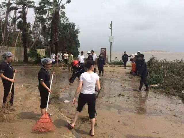 金門灣酒店位處臺(tái)風(fēng)登陸點(diǎn),當(dāng)晚全體管理人員留守酒店值班,處理滲水,加固門窗。臺(tái)風(fēng)登陸后,又忙于周邊環(huán)境的清理和受損發(fā)電機(jī)的維修。家住酒店附近此次臺(tái)風(fēng)登陸點(diǎn)歐厝村的員工連家都沒有回,幾天來一直奮戰(zhàn)在抗臺(tái)救災(zāi)的現(xiàn)場(chǎng)。