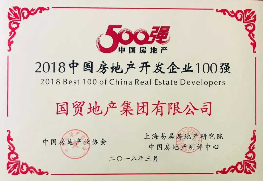 國貿(mào)地產(chǎn)再獲中國房地產(chǎn)開發(fā)企業(yè)百強稱號