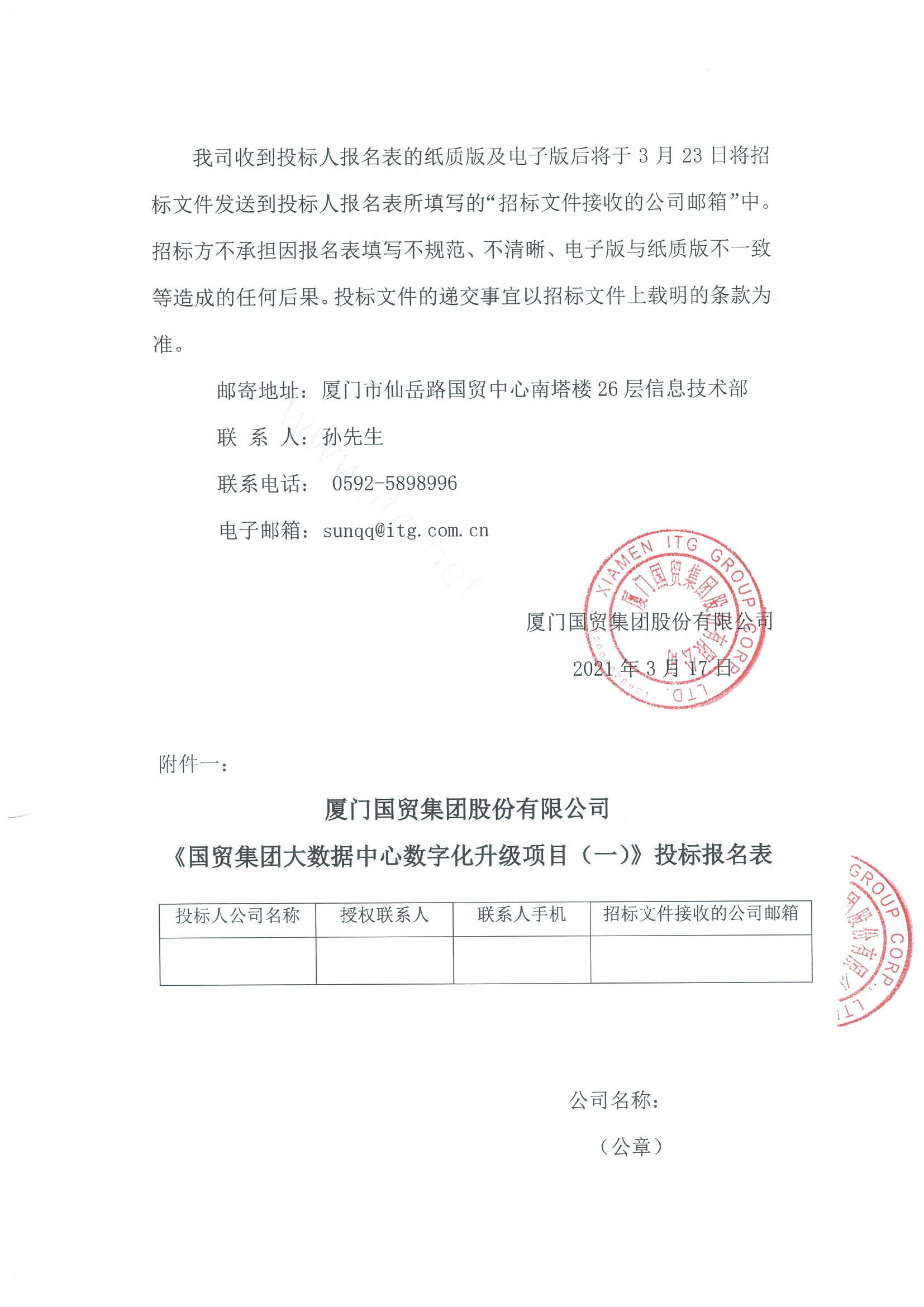 關(guān)于《國貿(mào)集團(tuán)大數(shù)據(jù)中心數(shù)字化升級(jí)項(xiàng)目(一) 》招標(biāo)公告