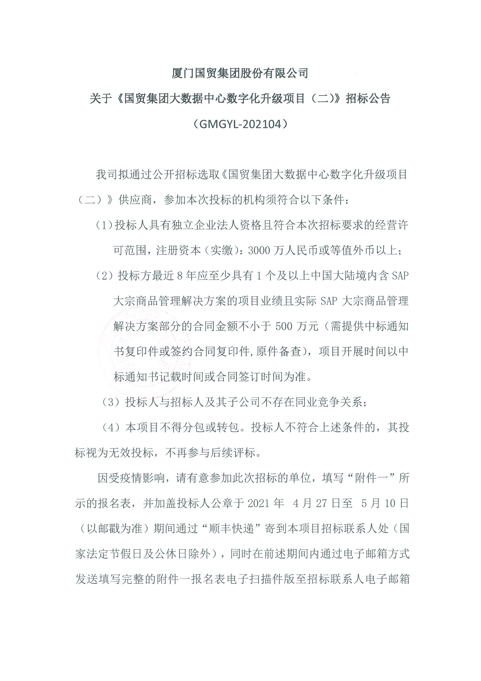 關(guān)于《國(guó)貿(mào)集團(tuán)大數(shù)據(jù)中心數(shù)字化升級(jí)項(xiàng)目(二)》招標(biāo)公告