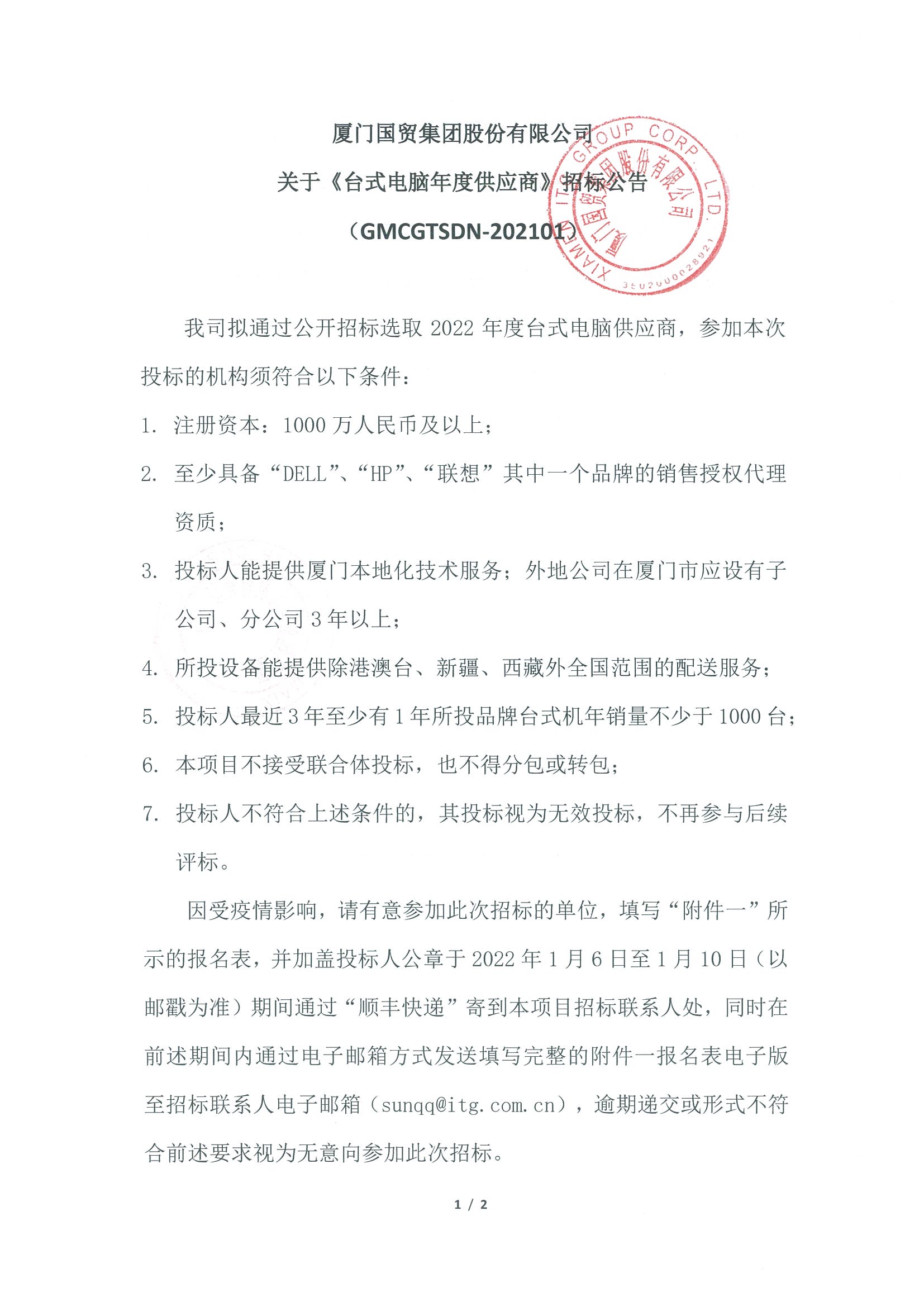 《臺(tái)式電腦年度供應(yīng)商》 項(xiàng)目采購招標(biāo)公告