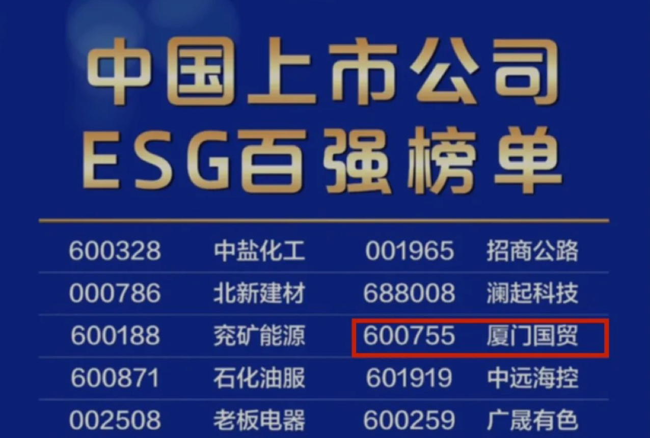 廈門(mén)國(guó)貿(mào)(股票代碼:600755)憑借在ESG方面的優(yōu)異表現(xiàn)榮獲“中國(guó)上市公司ESG百?gòu)?qiáng)”,并納入“中證證券時(shí)報(bào)ESG百?gòu)?qiáng)指數(shù)”。