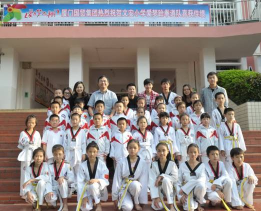 文安小學(xué)愛夢跆拳道隊成立于今年年初,由廈門國貿(mào)集團贊助支持,并取名為“愛夢