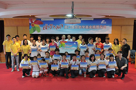 多年來,廈門國貿(mào)在持續(xù)快速健康發(fā)展的同時,始終不忘履行企業(yè)社會責(zé)任, 常年開展“愛與夢飛翔”社會公益活動,堅持回饋社會、關(guān)愛貧困兒童。2012年,公司與廈門市特殊教育學(xué)校共建,除設(shè)立“愛與夢飛翔”助學(xué)基金外,將企業(yè)文化與共建活動相結(jié)合,公司職工俱樂部與特教學(xué)校學(xué)生一起活動,幫助學(xué)生接觸社會,增強自信,快樂成長。